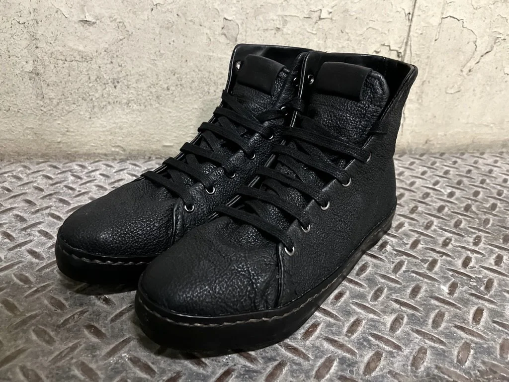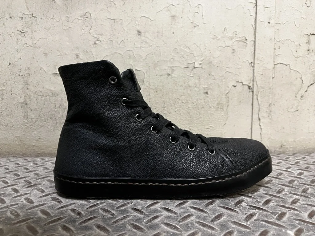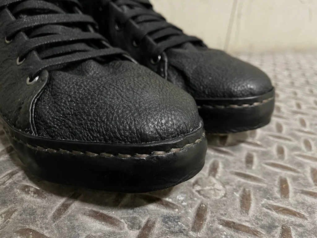 A fully lined pair of seven-eyelet sneakers. The upper is made from Ecco’s FSDX Dyneema leather. This unique leather is made from a very thin cowhide that has been fused with bio-based Dyneema fabric, allowing the material to be both lightweight and incredibly strong. This sneaker has been hand welted with a Horween Chromexcel sidewall, a Splenda vegetable-tanned footbed, and a natural rubber crepe outsole.