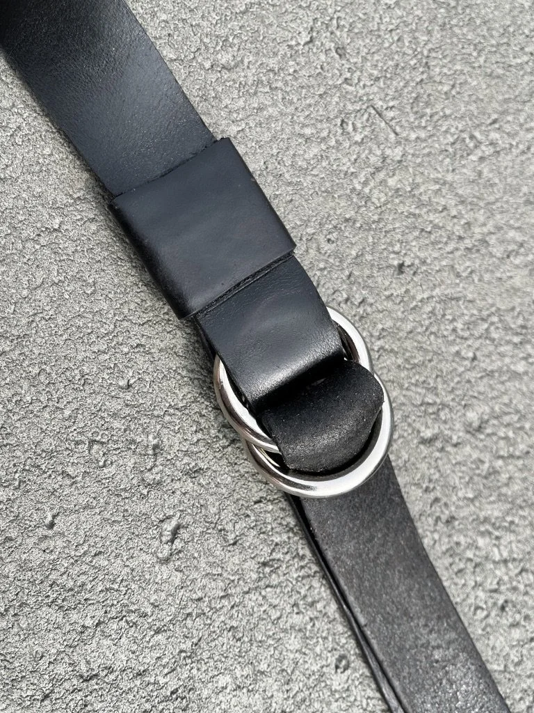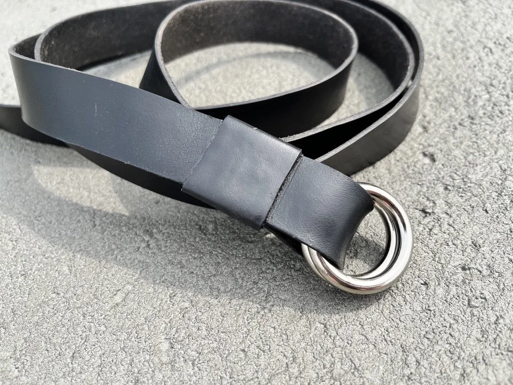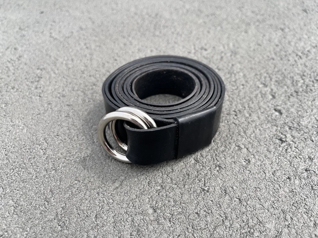A belt made from Horween Chromexcel horse strip and nickel-plated, marine grade hardware. This leather is tanned alongside Horween’s shell cordovan for the first 45 days. The belt strap is cut alongside the curve of the hide to reduce waste and provide a unique aesthetic. Each belt is hand finished and burnished.